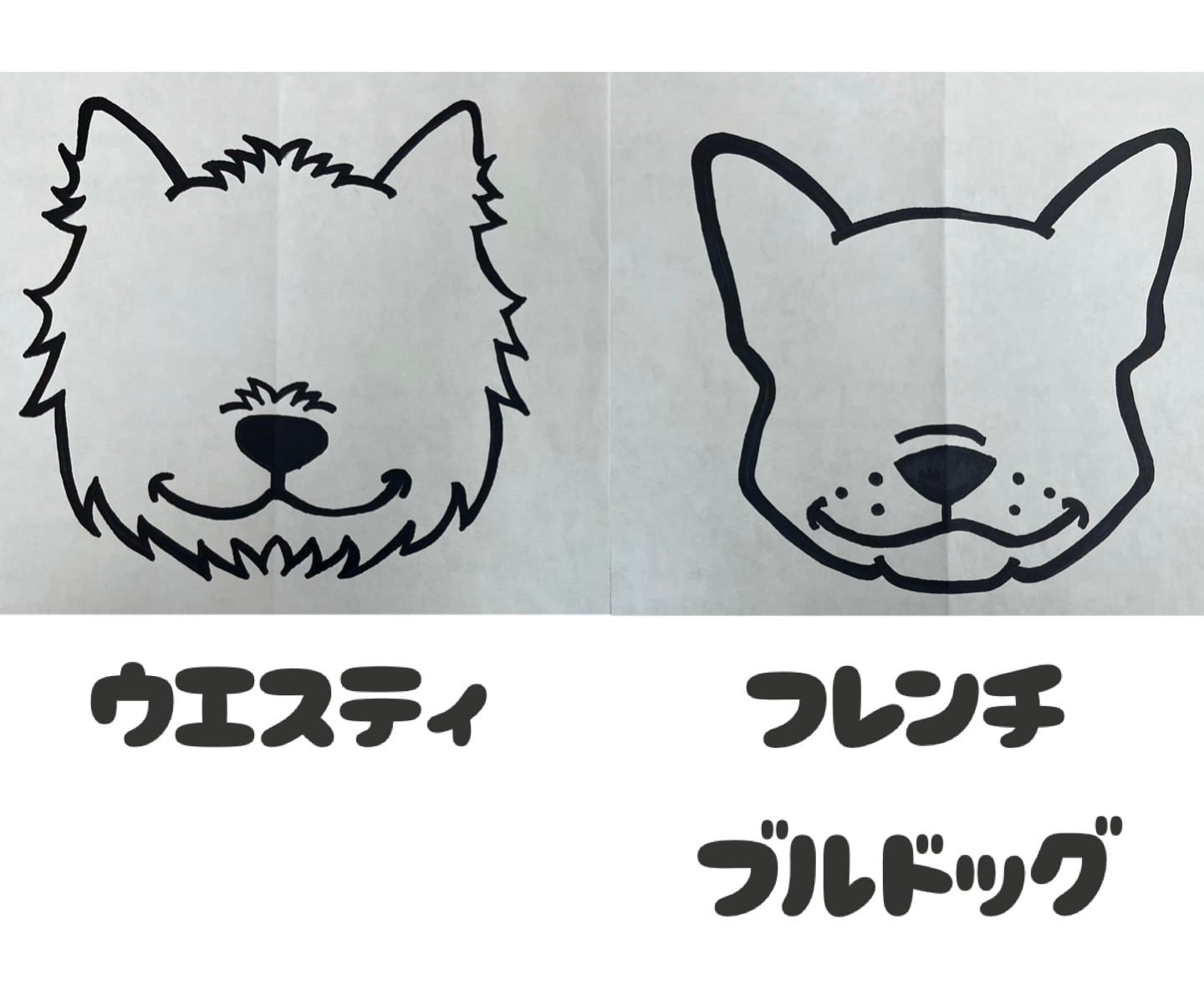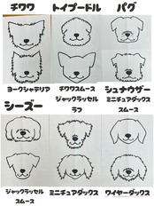 犬種別のお顔シルエットに名前入りのプリントで、すべて手書きデザインです。